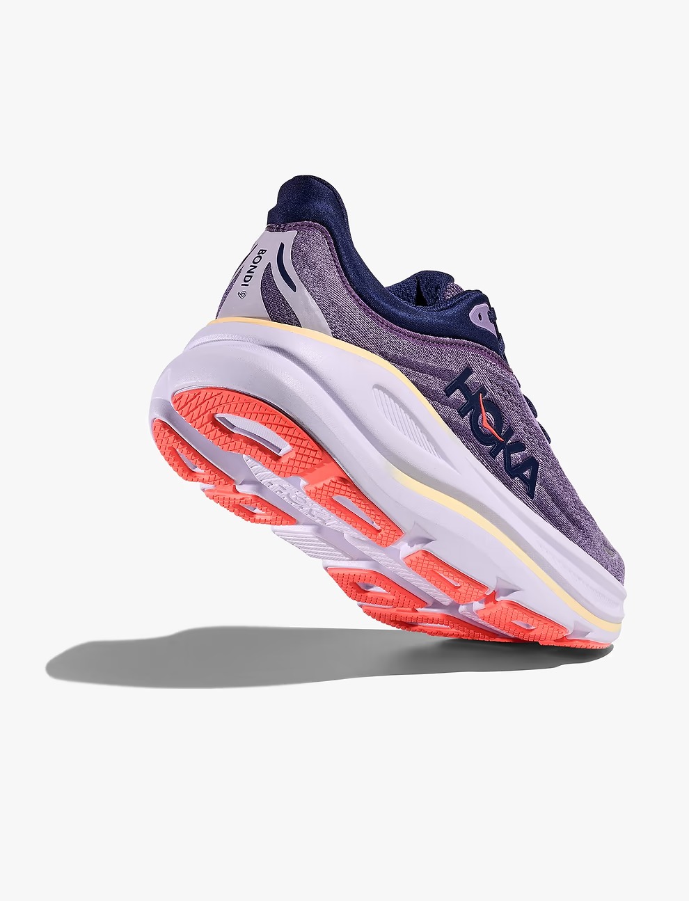 סוליה – גובה הסוליה עלה ב- 2 מ”מ נוספים והתחדש בפולימר פרימיום Super Critical Foam כדי לספק את התנועה הרכה והגמישה הזו, שהפכה לשם נרדף ל -Bondi . העקב בסוליה התחדש במשיכה מורחבת Smooth MetaRocker™ לגלגול תנועה חלק וזורם. בחלקה החיצוני של הסוליה גומי Durabrasion עמיד על מנת להתמודד עם אזורי השחיקה המוגברת.